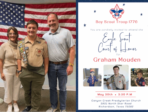 Troop 1776 all are welcome to help celebrate Graham Mouden’s Eagle Scout award. Please join the Mouden Family for Grahams Eagle Scout Court of Honor.